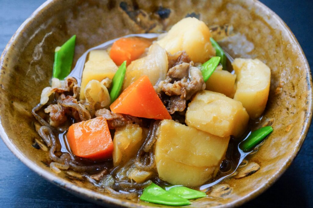 黒しおくんの鰹だしを使った肉じゃがは、シンプルながらも深い味わいを楽しめる一品です。